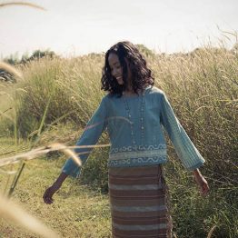 Dyed with the combination of indigofera and mangrove.
